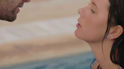 Горячая брюнетка отсасывает бойфренду член в открытом бассейне
