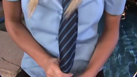 Весёлая девчонка с косичками снимает форму и мастурбирует киску