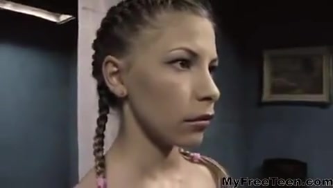 Юная нимфоманка с косичками занимается сексом с лысым мужчиной