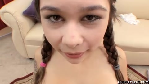 Девка с косичками Kira Sinn отсосала член и получила сперму в лицо