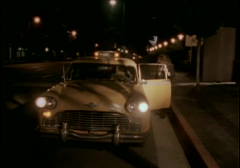 Грудастая блондинка в красном платье трахается в старинном такси