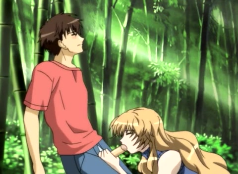 Хентай девушки отсасывают парню и трахаются в бамбуковом лесу