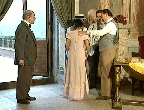Брюнетка Erica Bella в старинном платье занимается сексом на людях
