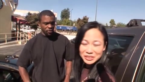 Негр подцепил узкоглазую шлюху и отодрал её на красном диване