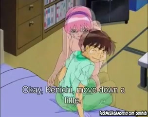 Малышка хентай с розовыми волосами отсосала и залезла на парня