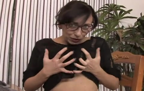 Очкастая женщина с отвисшей грудью Alia Janine дрочит хуй руками