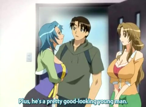 Две хентай девчонки делают минет и трахаются с парнем на кровати