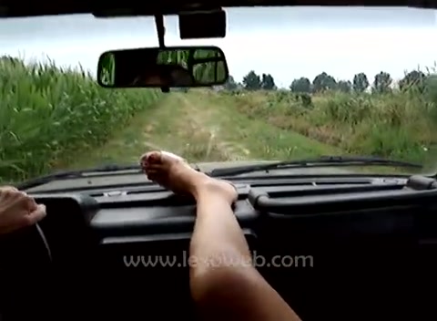 Лесбийская пара выезжает на машине в поле и занимается любовью