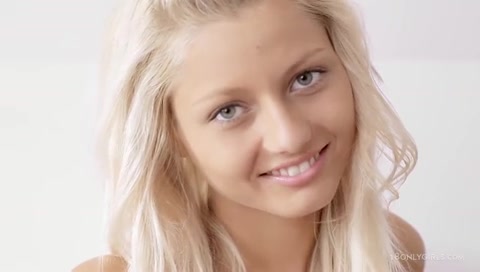 Молодая симпатичная блондиночка на кровати мастурбирует письку