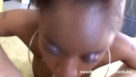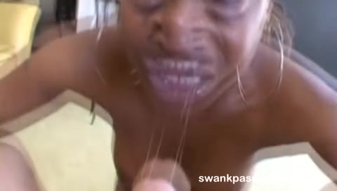 Чёрная шлюха усердно сосала член, пока парень не кончил в лицо