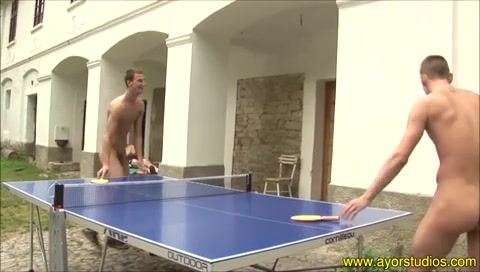 Голые молодые геи на улице играют в пинг-понг и занимаются сексом