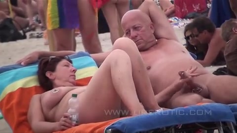 Зрелые женщины сосут член и мастурбируют на общественном пляже