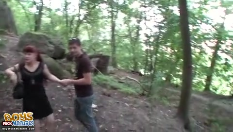 Два парня оттрахали в лесу старую рыжую украинскую проститутку