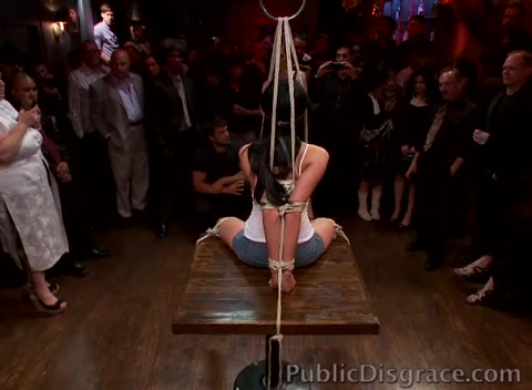 Мужчины облапали и отхлестали связанную шлюху с кляпом во рту