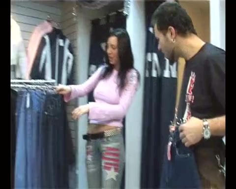 Молодая русская брюнетка ебётся с парнем в примерочной магазина