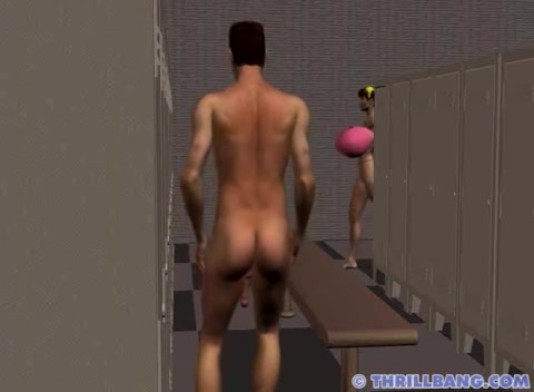 Рыжая 3d женщина с большой грудью ебётся с парнем в раздевалке