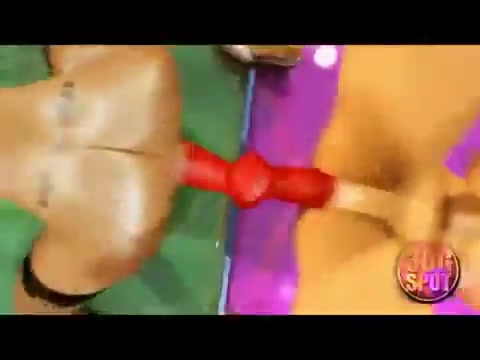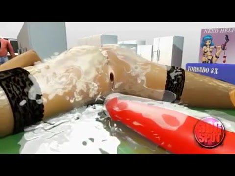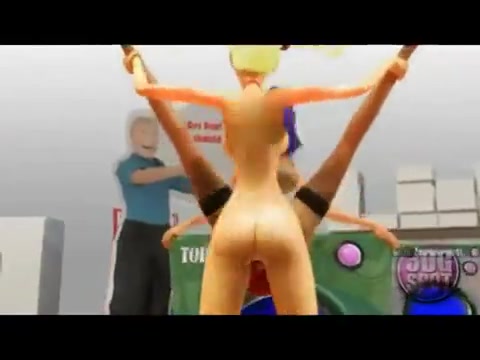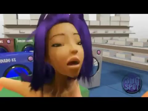 3D девушки занимаются сексом со страпоном в магазине электроники