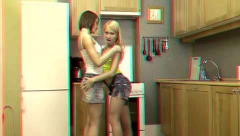 Две молодые русские тёлки занимаются на кухне лесбийским сексом