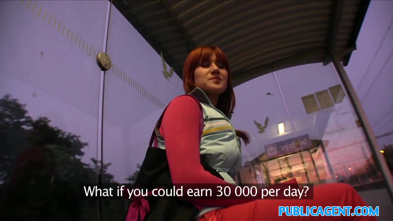 Парень снял на остановке рыжую тёлку и оттрахал в бритую киску