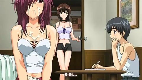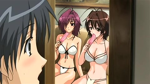 Хентай красавица на кровати подрочила парнишке член в позе 69