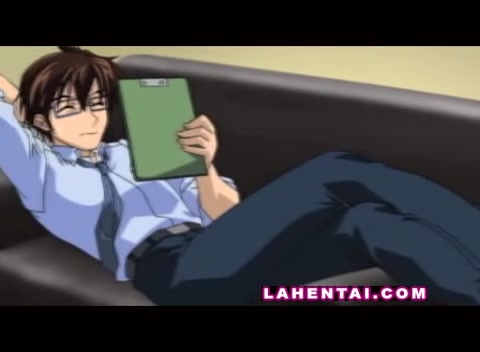 Хентай девка с зелёными волосами набросилась на парня и отсосала