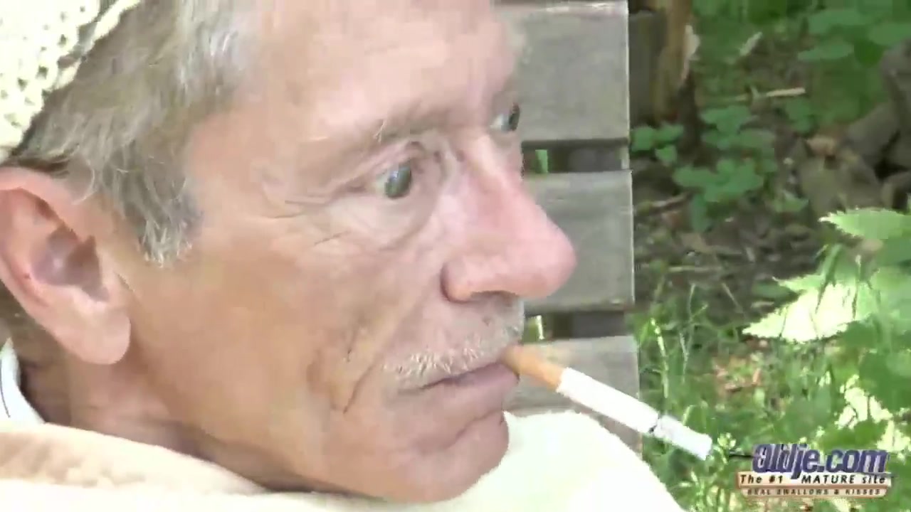 Худая длинноволосая блондиночка на поляне трахается со стариком