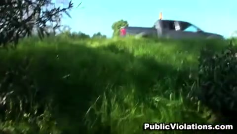 Молодую цыпочку с пирсингом в пупке отодрали раком на природе