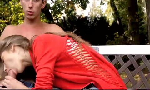 Юная подруга делает минет и ебётся с парнем на скамейке в парке