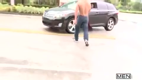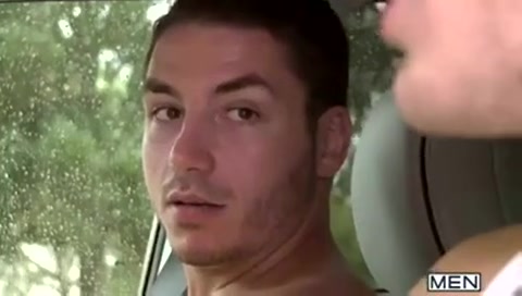 Мускулистый голубой парень сел в машину и трахнулся с водителем