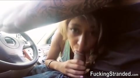 Девушка с большой грудью села в машину к мужику и отсосала член