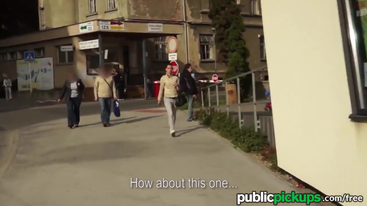 Молодая брюнетка на улице показывает сиськи и ебётся с парнем