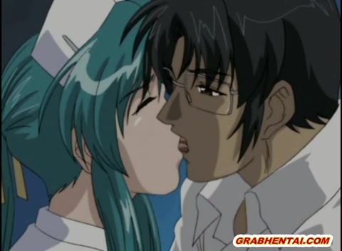 Хентай медсестра отсасывает член и трахается с парнем на кровати