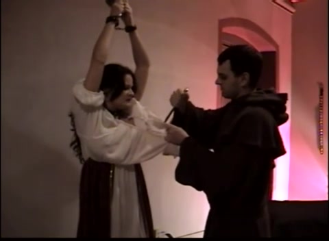 Монахи привязали к потолку грудастую ведьму и оттрахали рачком
