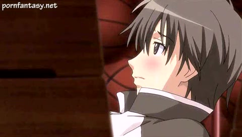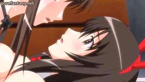 Аниме девка делает парню минет и сзади получает страпон в киску