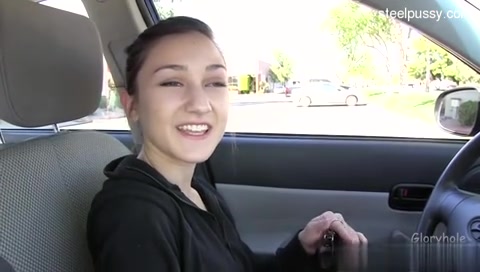 18-летняя девушка Belle Claire отсасывает просунутые в дыру члены