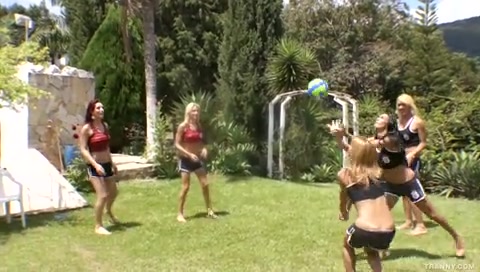 Пять транссексуалов почти затрахали парня после игры в волейбол