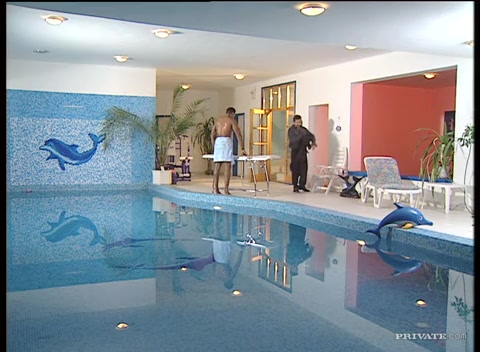 Мужчины оттрахали молодую сексуальную брюнетку возле бассейна