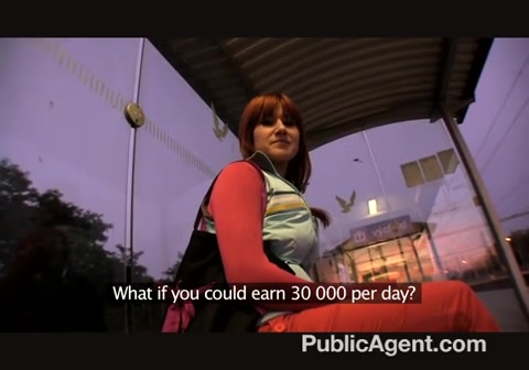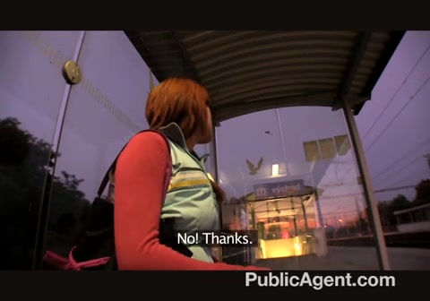 Рыжая девчонка на ночной остановке отсасывает и ебётся с парнем
