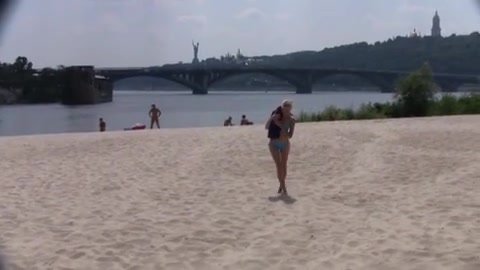 Рыжая девушка и блондинка загорают голышом на городском пляже