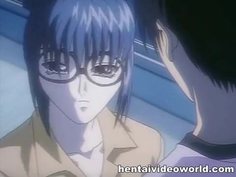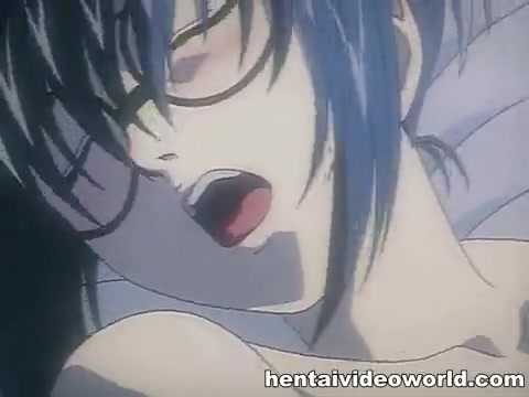 Парень раздел хентай девку в очках и оттрахал сверху на кровати