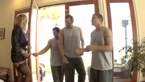 Ненасытная зрелая блондинка Debi Diamond ебётся с тремя парнями