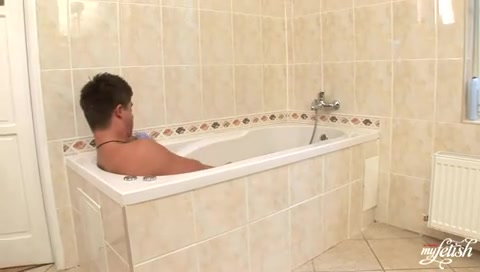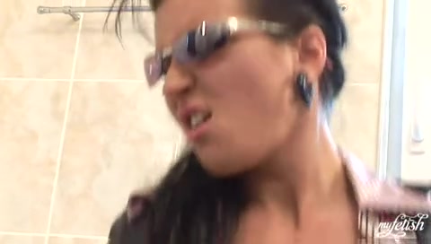 Девушка в латексном костюме отсасывает и ебётся с парнем в ванной
