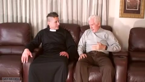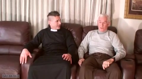 Седовласый гей делает минет и подставляет задницу святому отцу