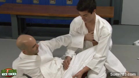 Геи дзюдоисты после тренировки занимаются сексом в раздевалке