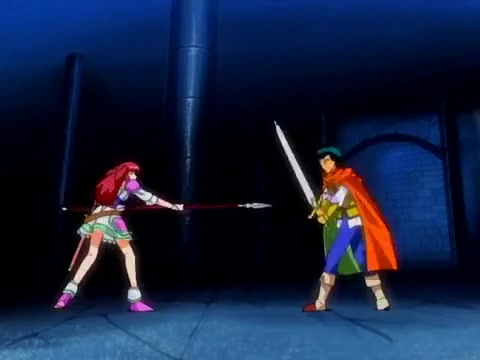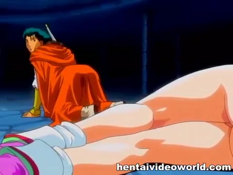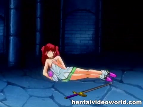 Аниме девчонка с красными волосами занимается сексом с рыцарем