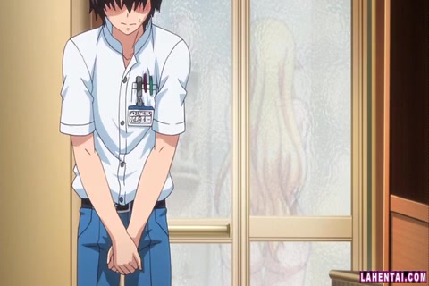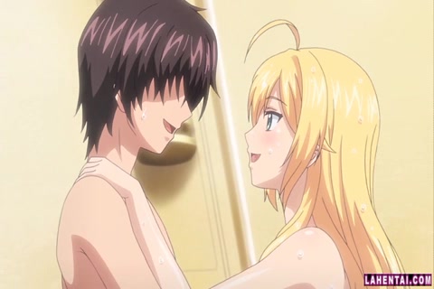 Грудастая хентай блондинка целуется и трахается с парнем в душе