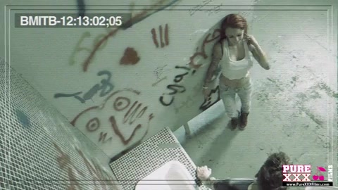 Рыжая грудастая девка Anna Joy трахается в общественном туалете