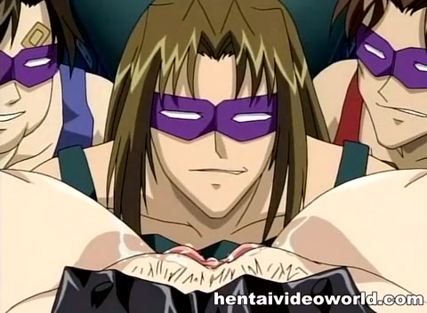 Парни в масках связали хентай девку и руками довели до оргазма