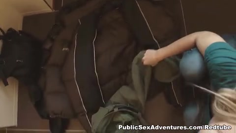 Девушка в сетчатых чулках Натали выебана в общественном туалете