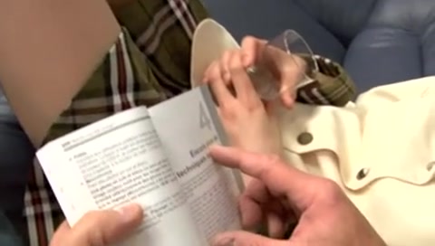 Японская девчонка с хвостиками отсасывает член белому мужчине